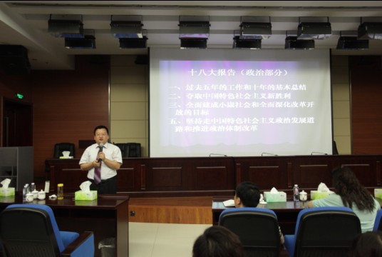 本次培訓特邀市黨校法學教研室錢格祥副主任主講。講課中,他從過去五年的工作和十年的基本總結,奪取中國特色社會主義新勝利,全面建成小康社會和全面深化改革開放目標,堅持走中國特色社會主義政治發展道路和推進政治體制改革等幾個方面,深入講解了我國在新時期面臨的挑戰和機遇。講課通過案例分析,以生動的形式使深奧的政治理論變得淺顯易董,讓培訓人員深受啟發。