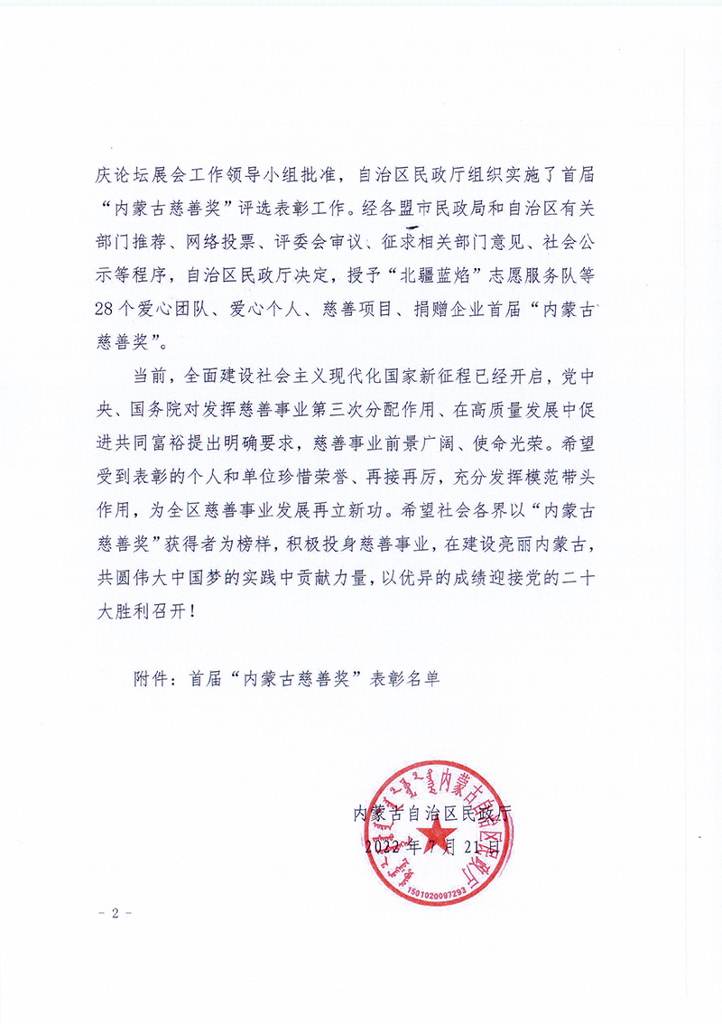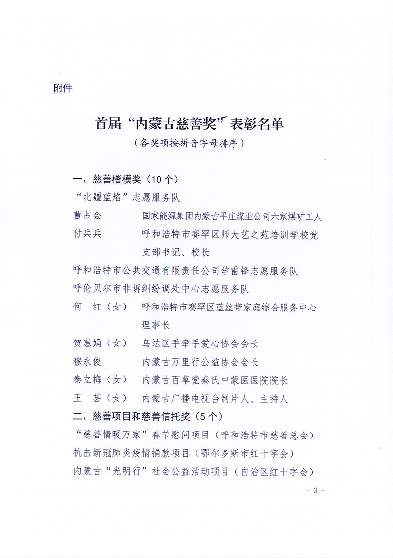 關(guān)于表彰首屆“內(nèi)蒙古慈善獎”獲得者的決定